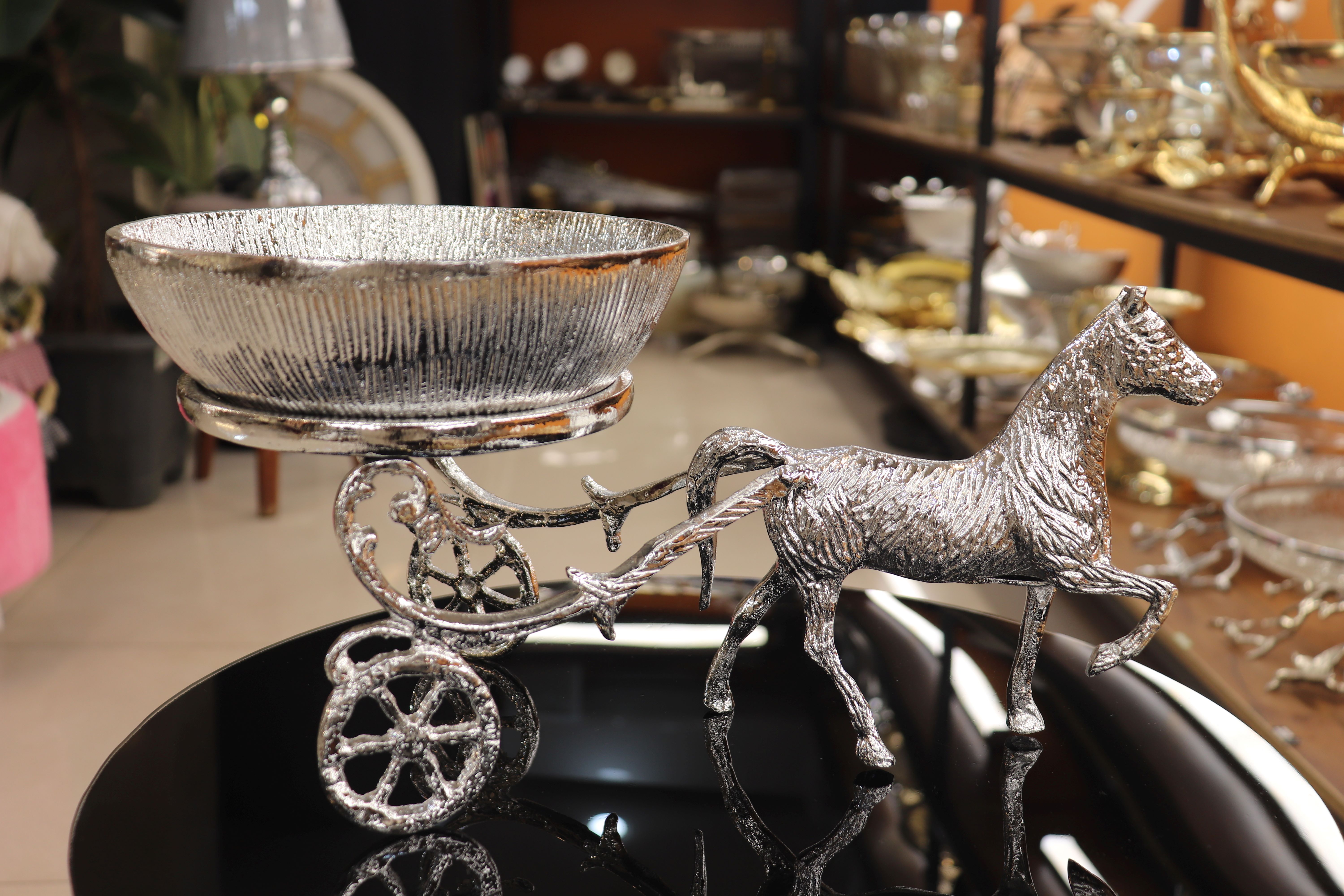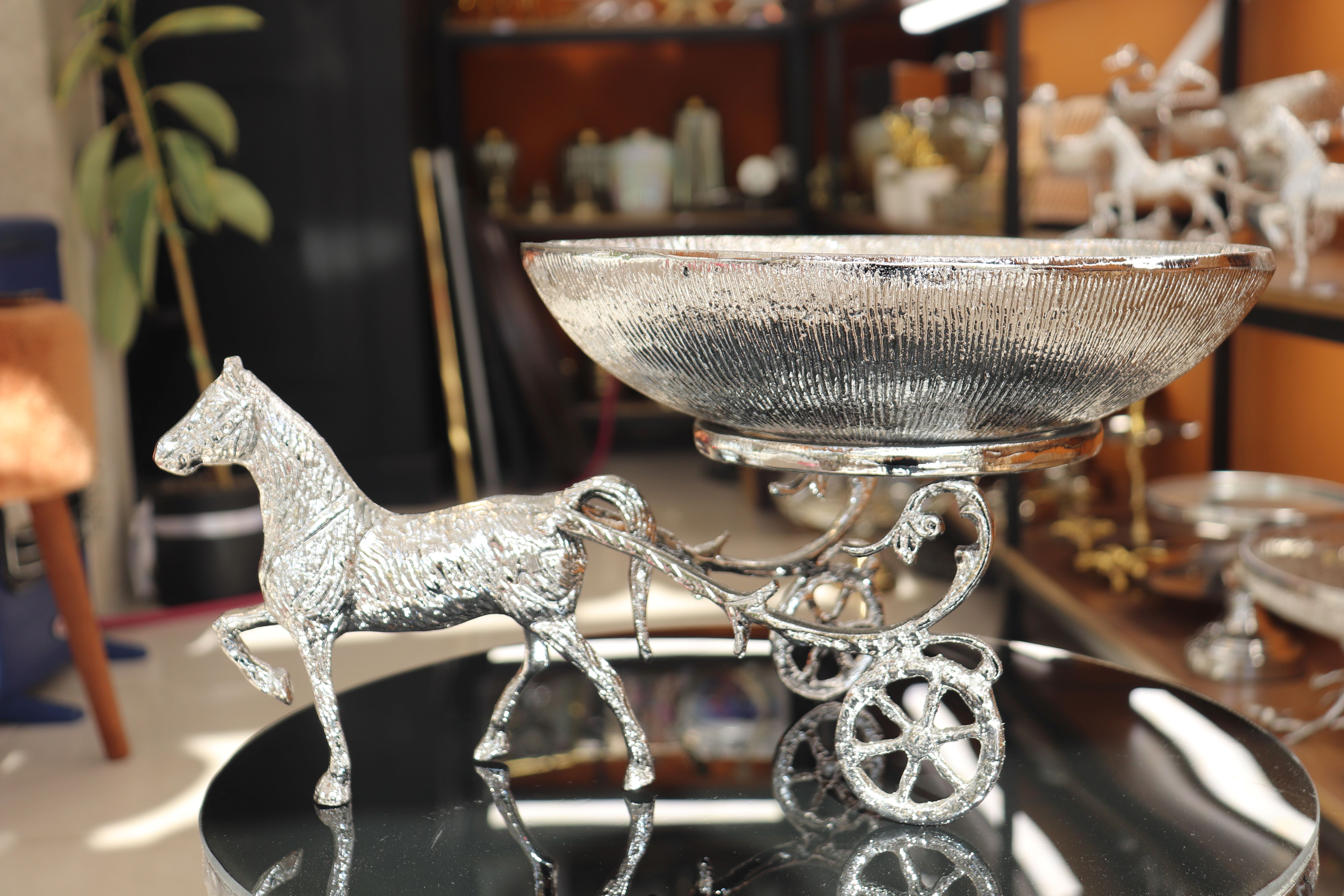 آجیل خوری آلومینیومی مدل کالسکه اسب رنگ سیلور و طلایی