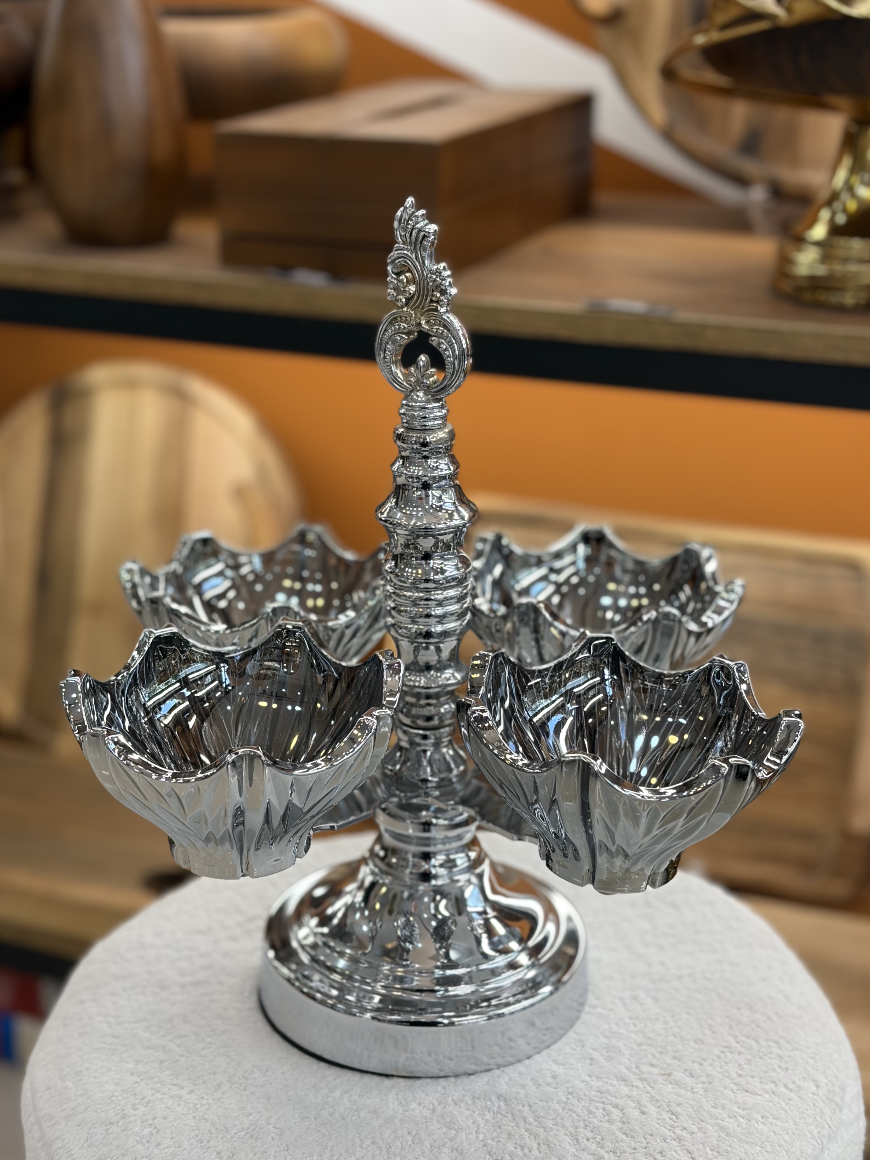 بانکه سه سایز پایهدار ترکیب فلز و شیشه،مناسب پذیرایی