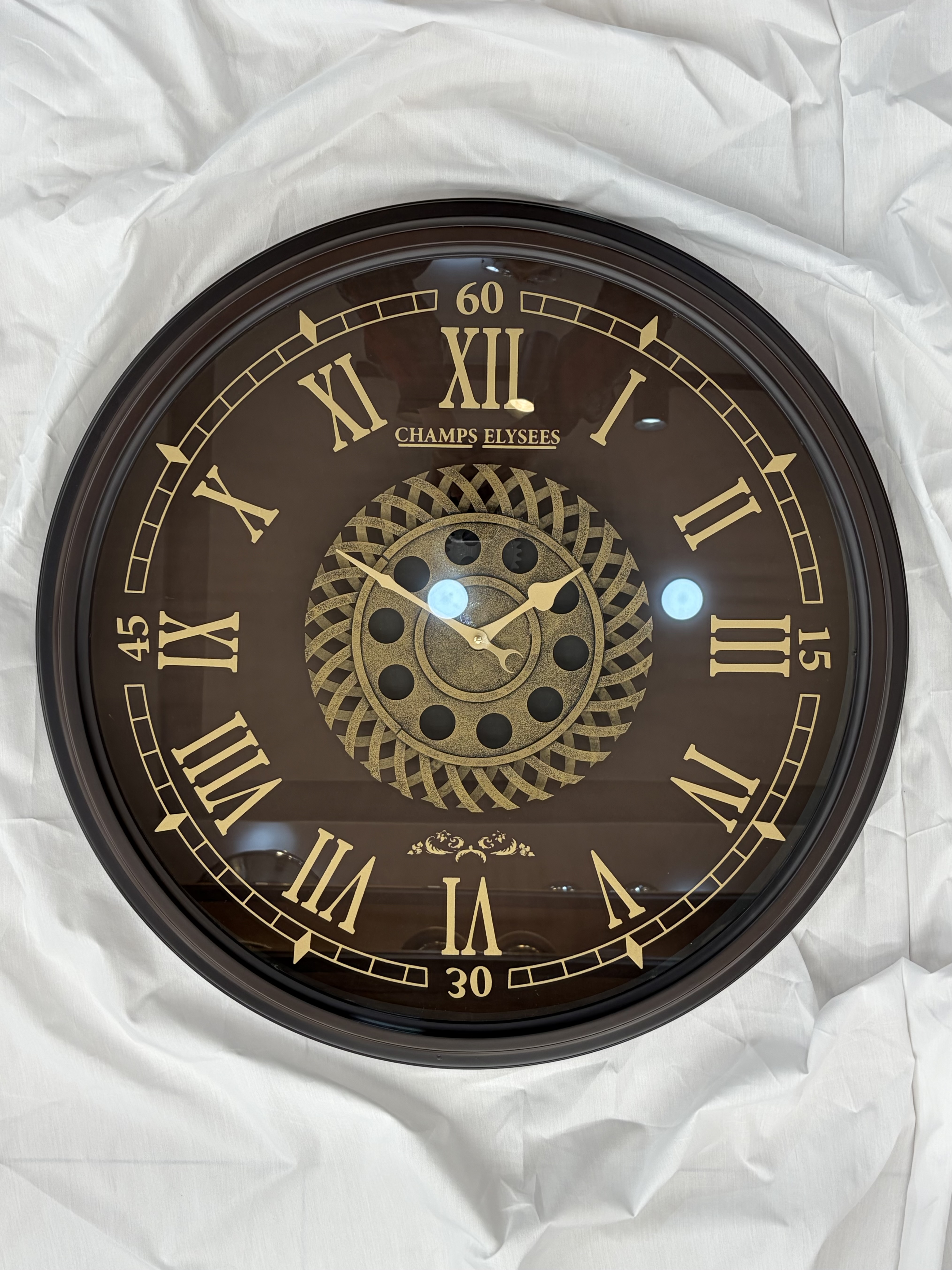 ساعت دیواری اویسامکانیزم گرد چرخ دنده ای رنگ قهوه ای
