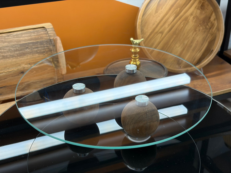 رایزر شیشه ای گرد پایه چوبی