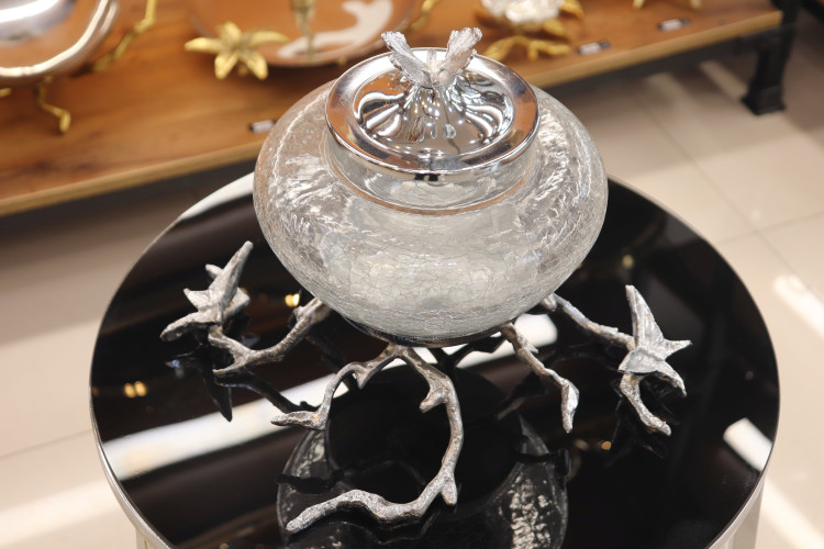 شکلات خوری شیشه ترک مدل پروانه رنگ سیلور