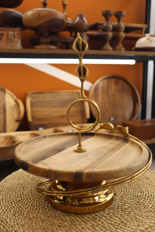 این ست پذیرایی 4 عددی چوبی با ترکیب جذاب چوب طبیعی و فلز طلایی، جلوهای لوکس و چشمنواز به میز پذیرایی شما میبخشد.