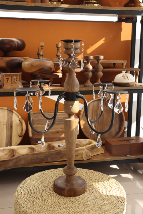 این شمعدان چوبی با طراحی کلاسیک و شاخههای فلزی مشکی، ترکیبی از اصالت و ظرافت را به فضای شما میآورد.