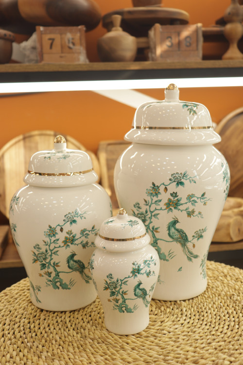 جینجر جار سرامیکی مدل سیمرغ سبز